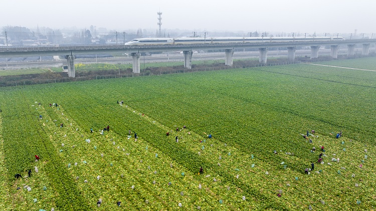 图为东坡区永丰村三百亩羊角菜丰收。 侯建明/摄