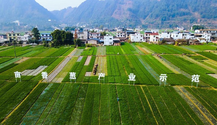 图为牟子镇万亩香葱示范基地。 郭星摄