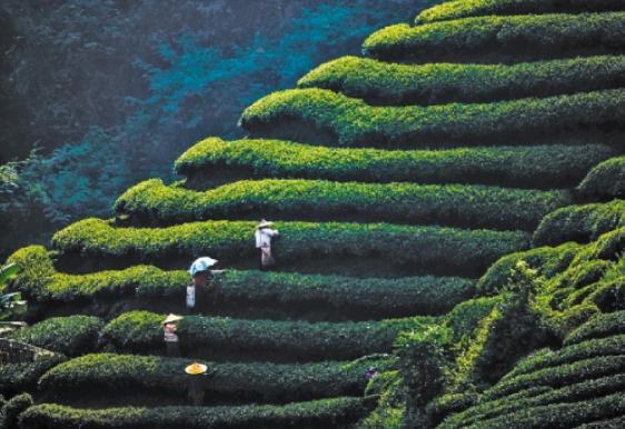 10月3日,茶农在广西贺州市昭平县高山生态茶园采摘秋茶。喻湘泉摄(中经视觉)