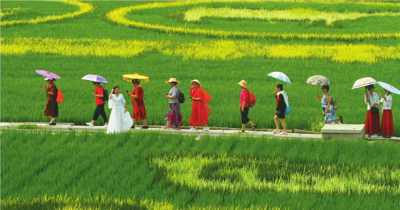 城乡资源互补,让乡村美景变身 “城市后花园”。洪茂种植家庭农场制作了2万平方米的稻田画,修建了稻田主题广场;建设400平方米田间大舞台、300个座位的看台;修建了150米的观光栈道,以及网红晃桥。将独特的农业资源与文化旅游相结合, 游客不仅能观赏美景,还能参与农事体验,感受农耕文化魅力。