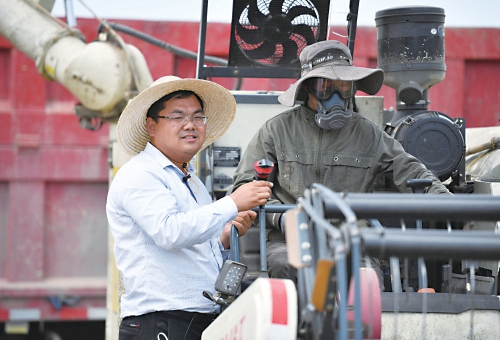 委员会成员、陕西长丰种业有限公司总经理薛强在进行小麦收割作业。 受访者供图