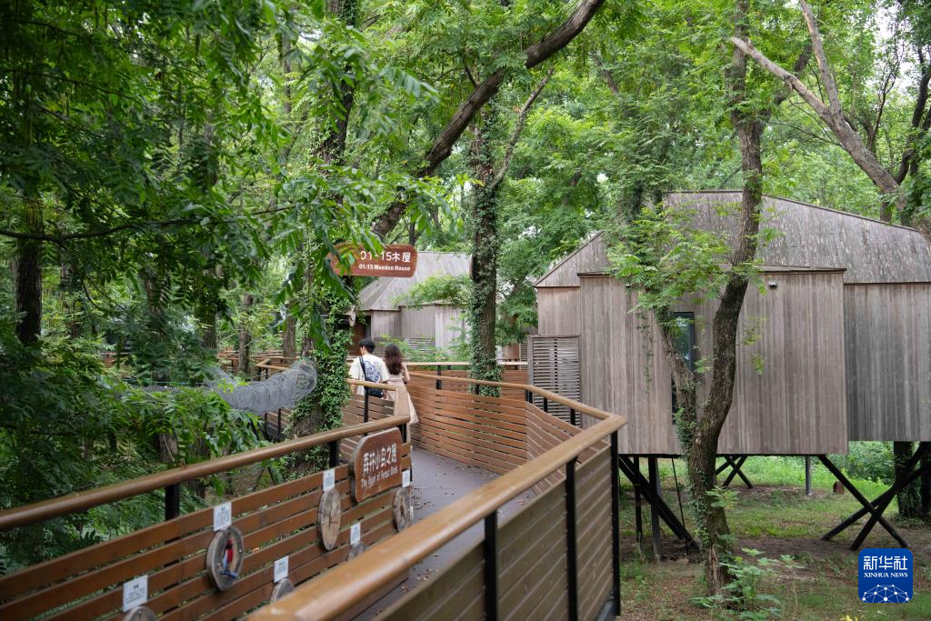 这是位于安徽省合肥市庐江县长冲村的一处供游客休闲及住宿的森林木屋(2025年7月26日摄)。新华社记者 张端 摄