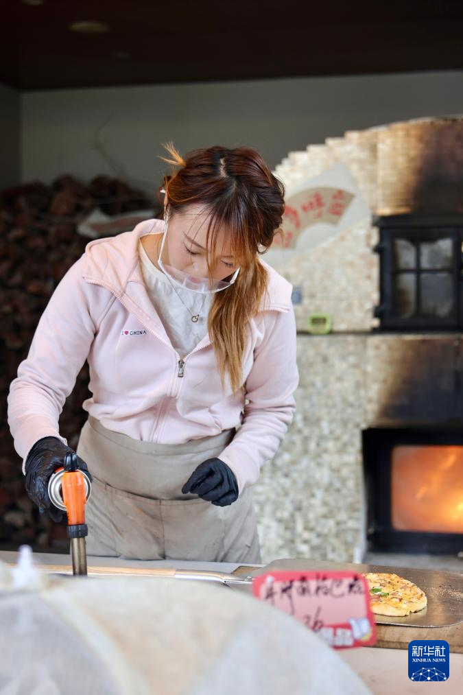 2025年10月3日,在安徽省合肥市庐江县万山镇一家窑炉面包店内,店员在制作披萨。新华社发(凤俊 摄)