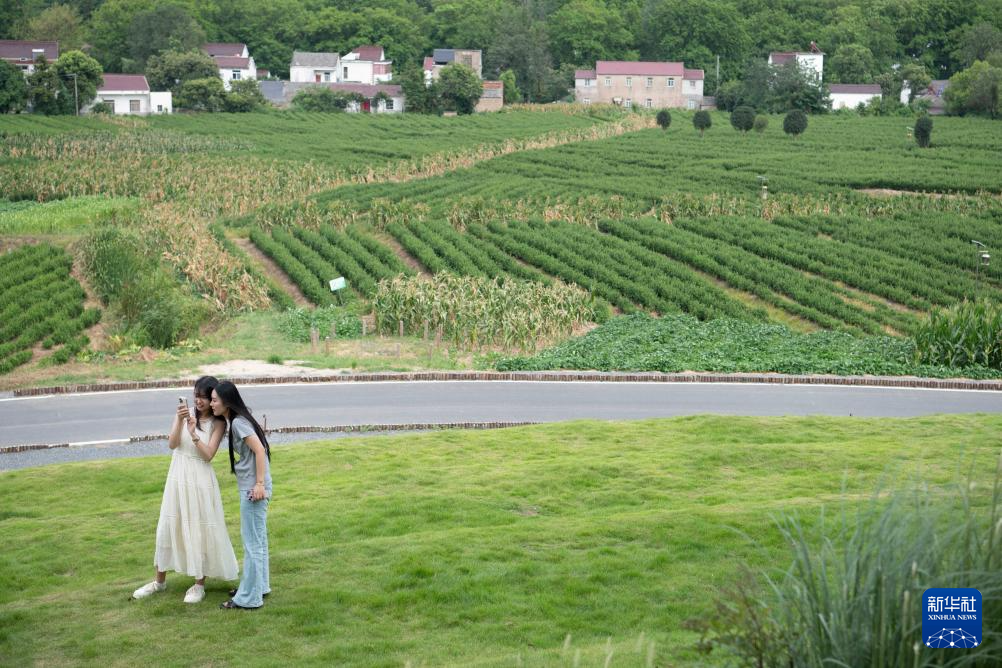 2025年7月26日,游客在安徽省合肥市庐江县长冲村拍照游玩。新华社记者 张端 摄