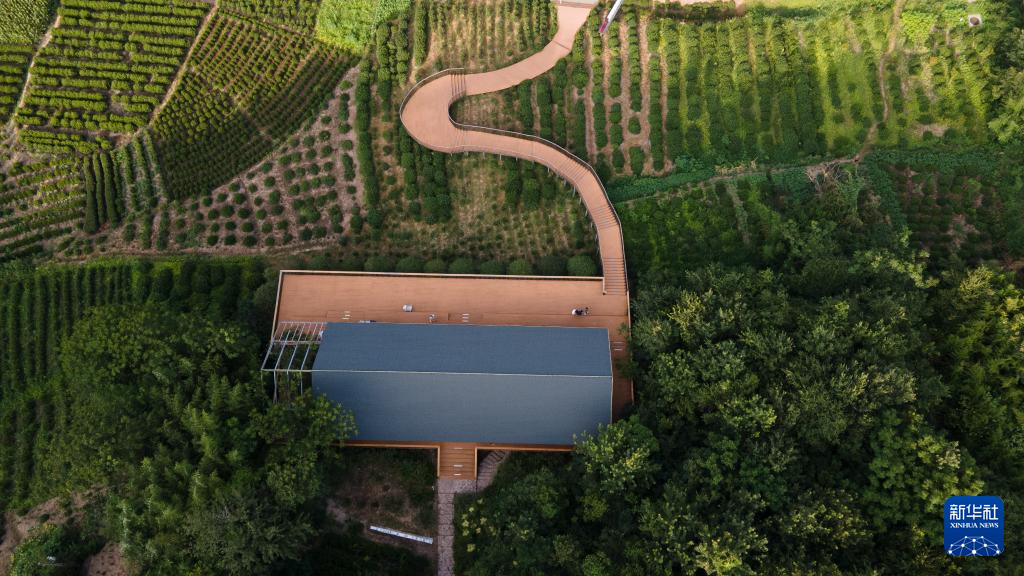 这是位于安徽省合肥市庐江县长冲村的一处建在茶园之上的咖啡馆(2025年7月26日摄,无人机照片)。新华社记者 张端 摄