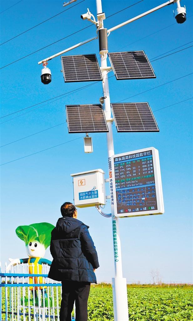 11月28日,咸宁市嘉鱼县蔬菜数字化健康栽培基地,农业数字化服务站监测屏实时更新各地块的情况。