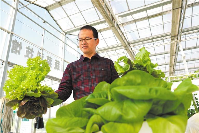 11月28日,咸宁市嘉鱼县潘家湾镇蔬菜科技馆,湖北省农科院专家刘志雄在展示大棚菜。科技馆通过生物防治技术培育20多种蔬菜,不用一滴农药、一粒化肥,成为农户学习先进技术的“样板间”。