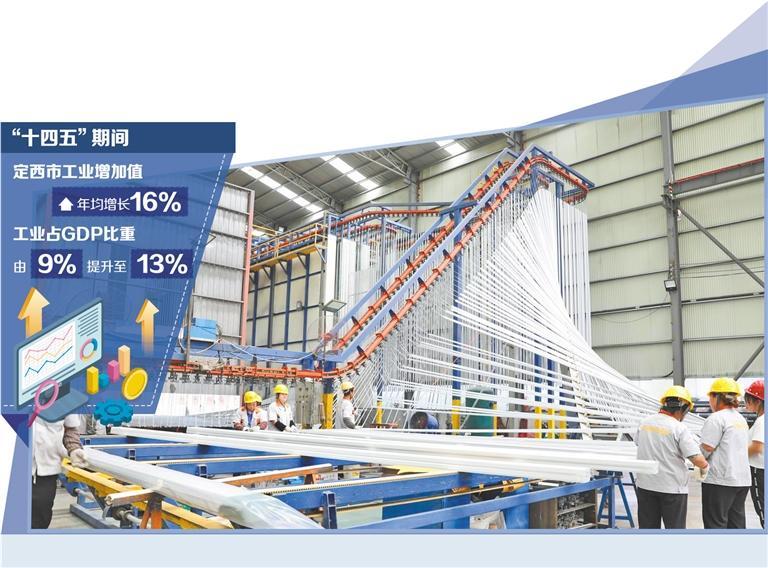 数据显示,截至目前,定西市规上工业企业达295户,较2020年增加177户,装备制造、有色冶金、新能源等新动能加速形成。“十四五”期间,工业增加值年均增长16%,工业占GDP比重由9%提升至13%。