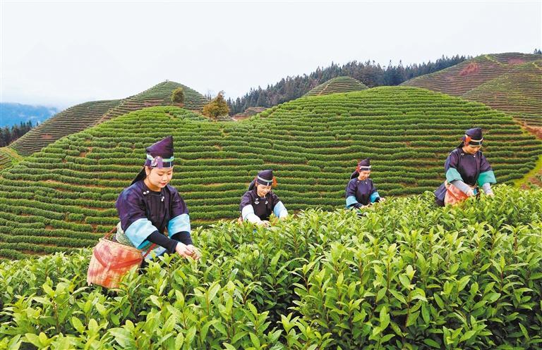 ▲3月20日,茶农在贵州省榕江县两汪乡采摘青白茶。李长华摄(中经视觉)