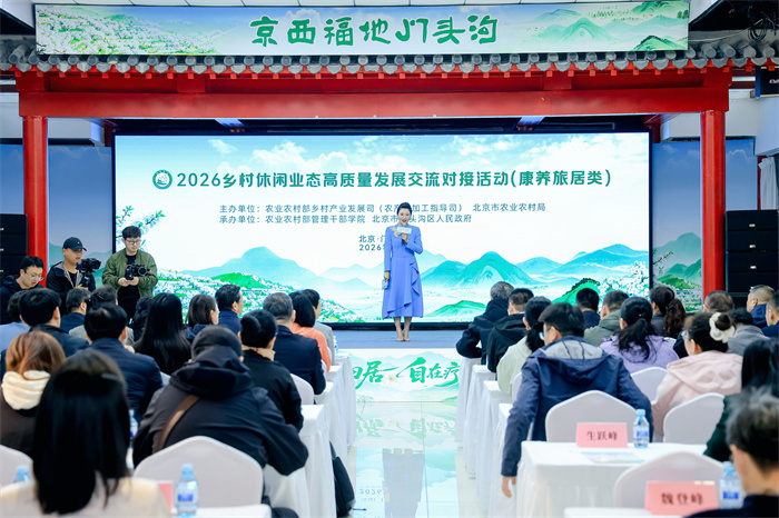 中国经济网北京4月16日讯(记者 高原)4月15日,2026乡村休闲业态高质量发展交流对接活动(康养旅居类)在北京市门头沟区成功举办。本次活动由农业农村部乡村产业发展司(农产品加工指导司)、北京市农业农村局主办,农业农村部管理干部学院、中共北京市门头沟区委、北京市门头沟区人民政府承办,以“归园田居、自在疗愈”为主题,通过成果发布、线路路演、资源对接、沉浸体验等环节,集中展示乡村康养旅居发展成果,搭建产业交流合作平台。