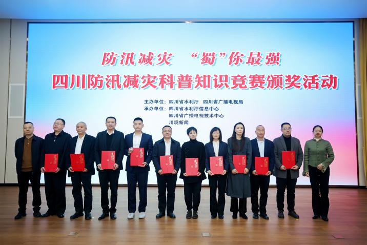 11月20日,“防汛减灾·蜀你最强”四川防汛减灾科普网络知识竞赛线下颁奖活动圆满举办。本次竞赛由四川省水利厅联合四川省广播电视局主办,四川省水利厅信息中心、四川省广播电视技术中心及川观新闻共同承办,线下颁奖活动作为竞赛的重要收尾环节,为获奖个人与组织送上荣誉与奖励,进一步强化防汛减灾知识普及效果,筑牢四川安全防护根基。