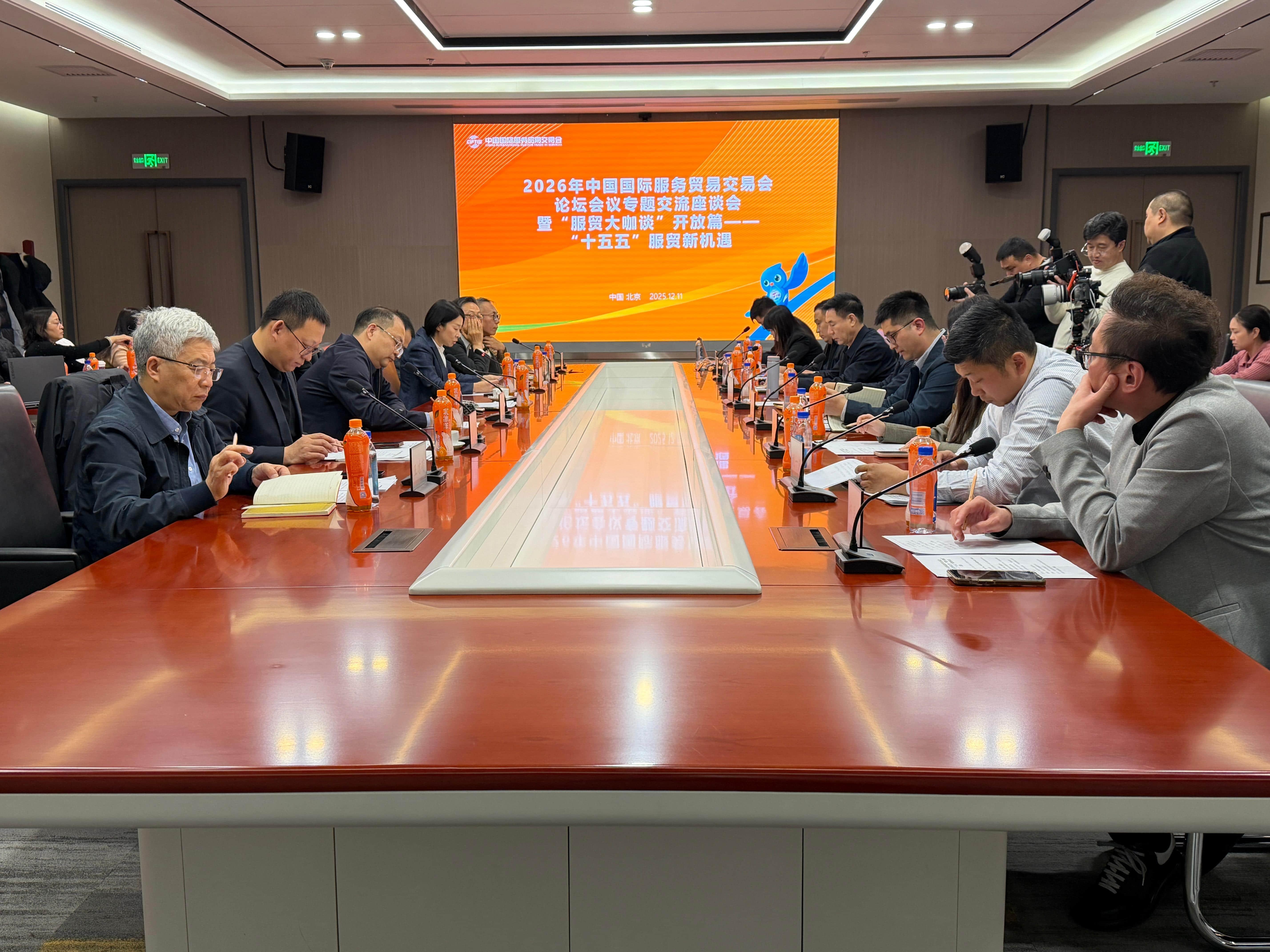 2026年中国国际服务贸易交易会论坛会议专题交流座谈会暨“服贸大咖谈”开放篇——“十五五”服贸新机遇活动12月11日在北京举办。会议邀请了2025年服贸会论坛会议咨询专家顾问与主题论坛主办方代表,共同研讨“十五五”行业发展趋势,并为2026年服贸会筹办工作积极建言献策。