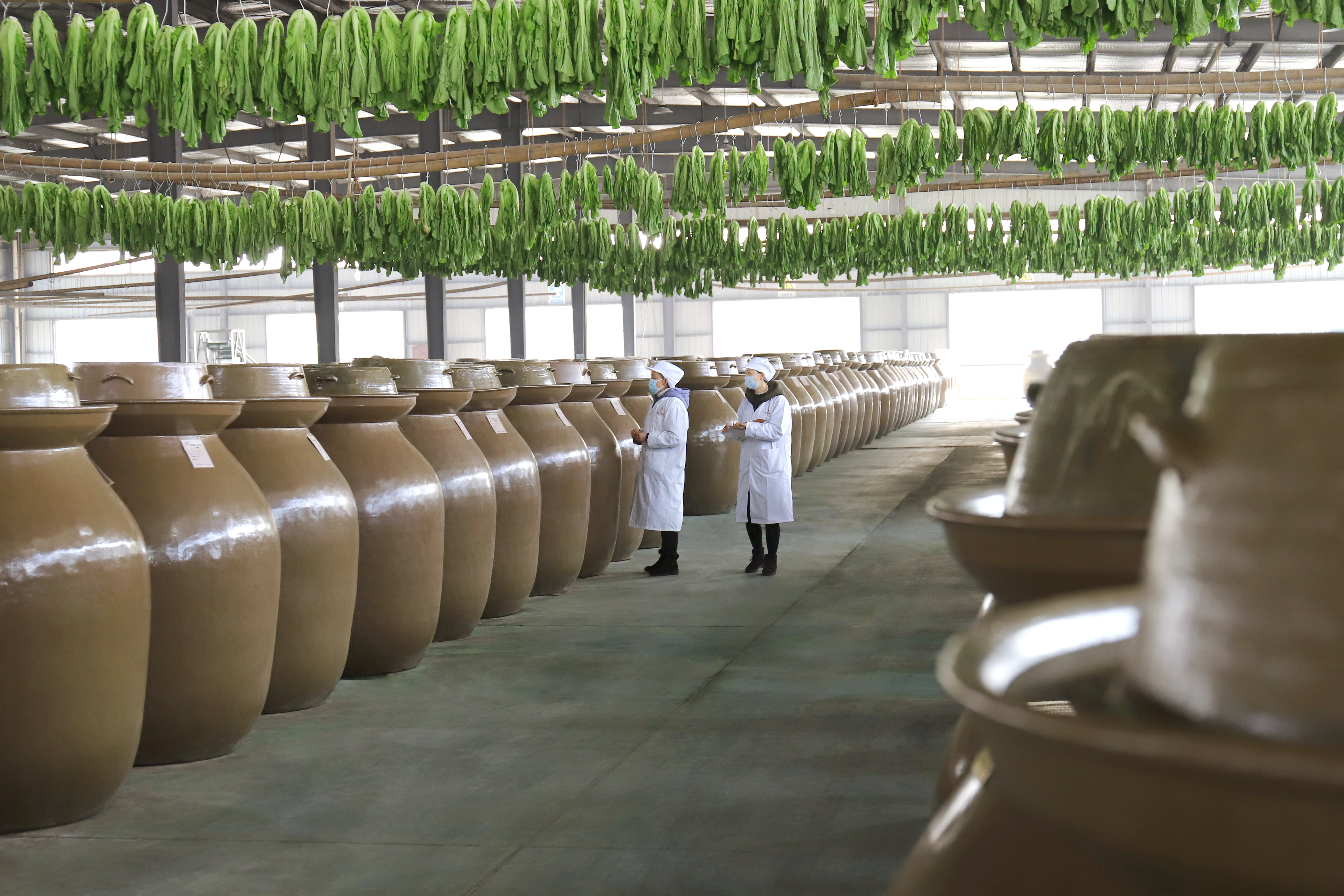 图为四川老坛子食品有限公司工作人员正在进行泡菜发酵检测。